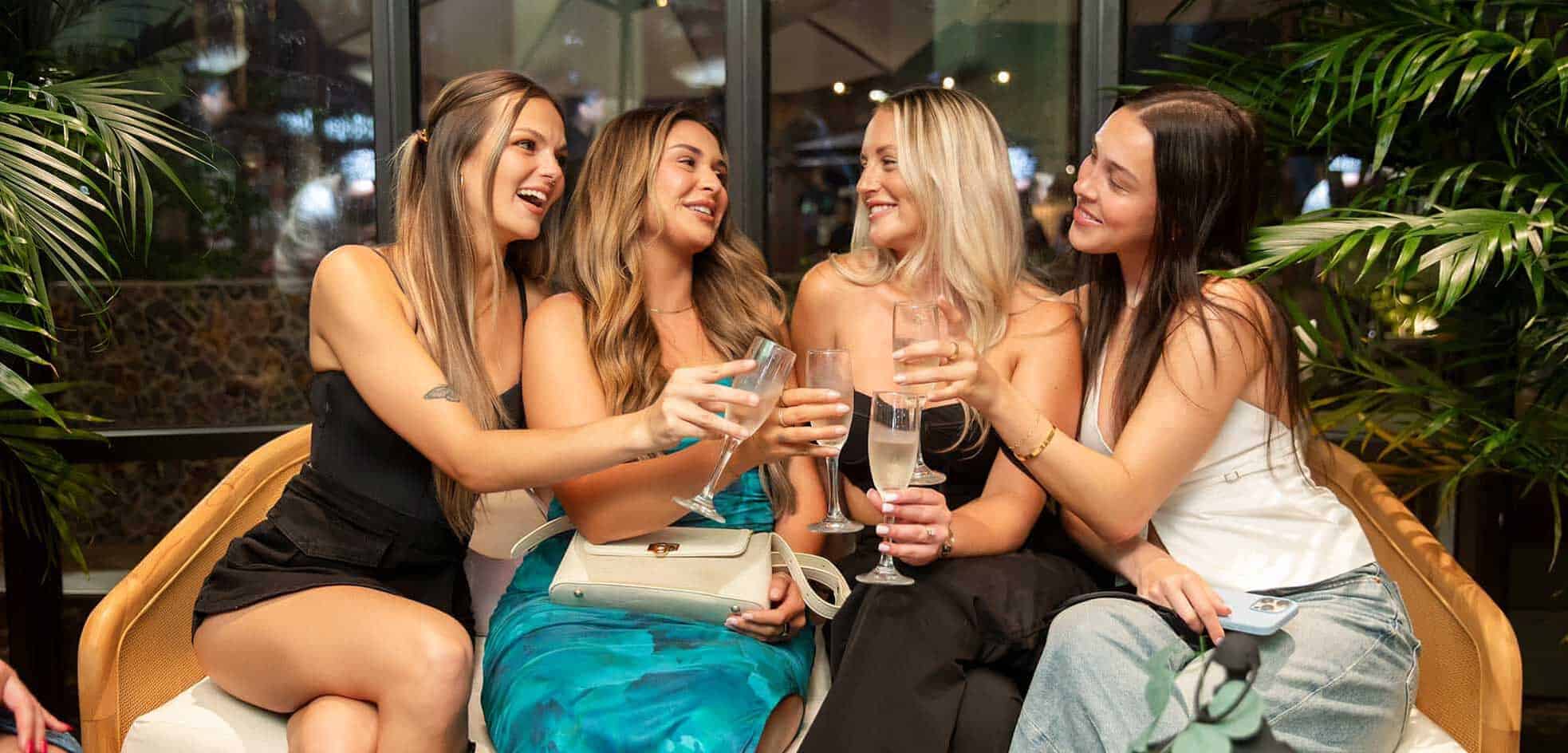 Friends toasting with cocktails in Helena Modern Riviera Restaurant